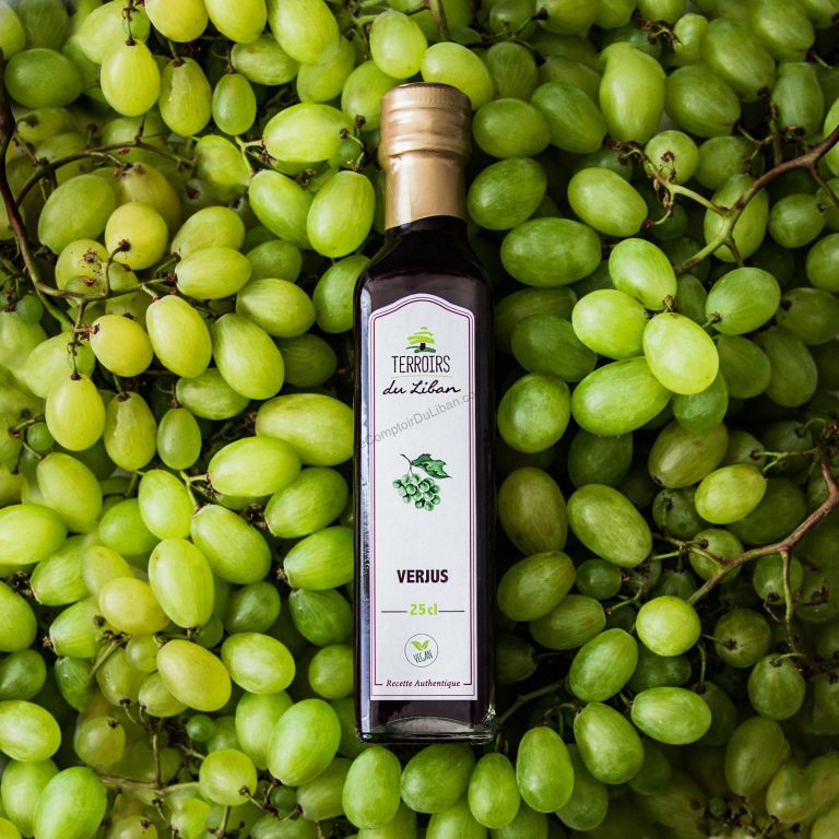 Le verjus ou jus de raisin aigre est un aliment de base dans tous les garde-manger libanais et la cuisine du Moyen-Orient,